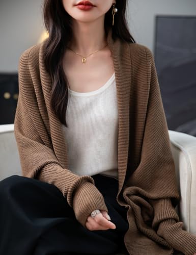 Women's Merino Wool Blend Oversized Cardigan 2025 Fall Winter Open Front Batwing Sleeve Rib Knit Slouchy Sweater 7