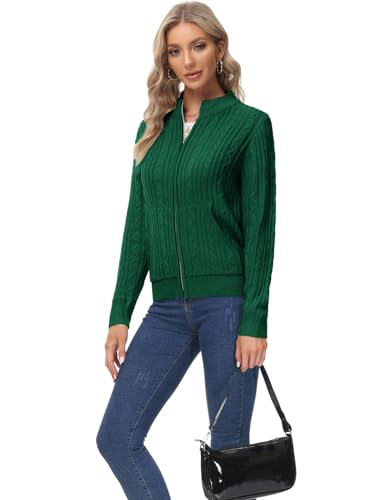 KANCY KOLE Women's Zip Up Cable Knit Sweater Long Sleeve Open Front Cardigan Warm Cardigan with Pockets Outwear Coat 6