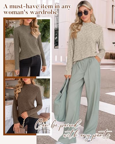 Riyiper 3 Pack Women's Mock Neck Sweaters, Long Sleeve Lightweight Tops Casual Soft Sweaters Knit Slim Fitted Basic Pullover 5