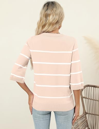 LOMON Womens Sweaters Casual Fall 2025 Crew Neck Striped 3/4 Sleeve Lightweight Knit Trendy Pullover Sweater Tops S-XL 3