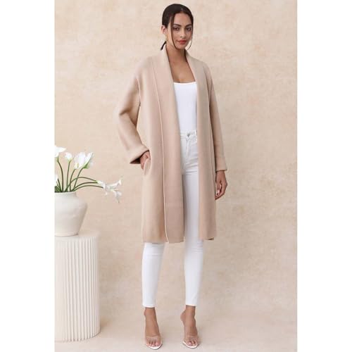 CHICWISH Women Shawl Collar Long Sleeve Cardigan Casual Open Front Knit Sweater Soft Long Coat with Pockets 1