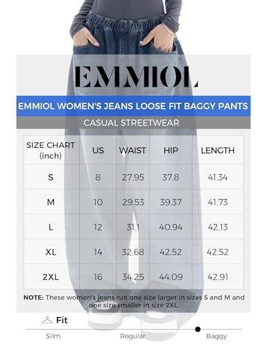 HOT ! EMMIOL Women's Baggy Boyfriend Jeans Wide Leg High Rise Dark Wash Vintage Jeans Y2K Street Denim Pants