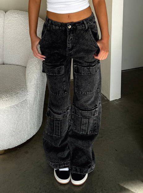 Women's Low Waist Cargo Pants Baggy Jeans Wide Leg Casual Trendy Streetwear Grunge Emo Clothes 4