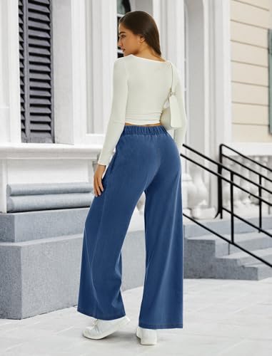 FireSwan Women's Wide Leg Jeans Stretchy Mid Rise Elastic Waist Jeans Baggy Loose Denim Pants with Pockets Trendy Casual 4