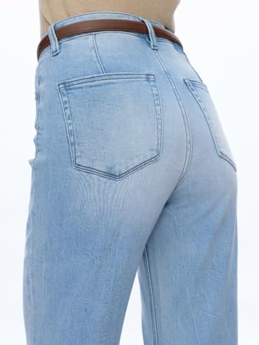 BlueMoment High Waist Stretchy Wide Leg Jeans for Women Basic Straight Denim Pants Raw Hem Underwear Trouser 6
