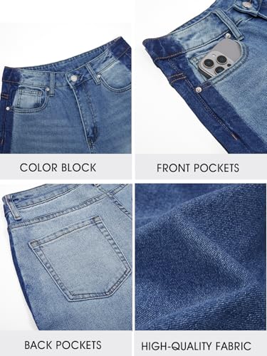 Cicy Bell Womens Wide Leg Jeans Casual Loose High Waisted Color Block Vintage Baggy Denim Pants 4