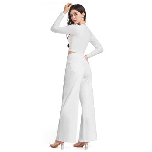 HOT ! Oneniao Womens Wide Leg Baggy Loose Jeans High Waisted Stretch Denim Pants Business Casual Daily Outfits for Curvy Women