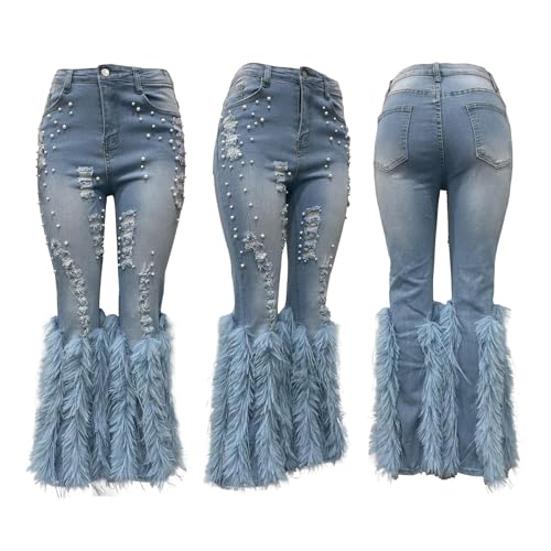 • Feature: Ripped jeans with pearl appearance, high waisted, butt lifting jeans, destroyed cut out, feather hem, bell bottom, stretchy jeans, skinny jeans, bootcut jeans, these pearl jeans make your going out sets more chic, exuding confidence and charm
