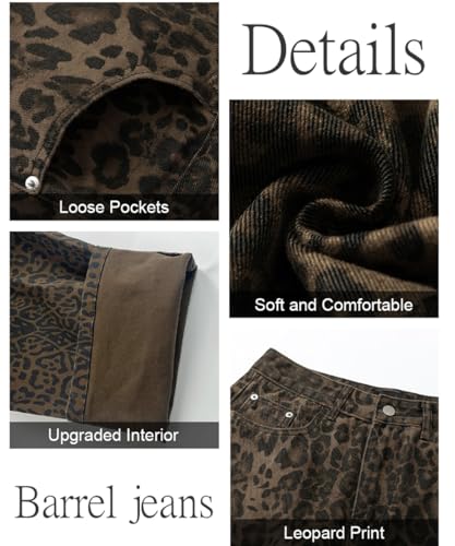 More information about Mid Rise Leopard Print Barrel Jeans for Women Stylish Boyfriend Wide Leg Baggy Denim Pants Trendy Printed Pants