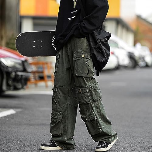 • Baggy Streetwear Pants Multiple Pockets:Wide Leg Y2K Fashion cargo pants, relaxed fit, elastic high waist, zipper and button closure,featuring with multiple practical and functional pockets,streetwear style,wrinkle resistant and not easily deformed.