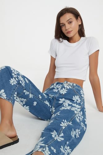 • Design:Floral printed make this jean more stylish and cute.Relaxed fit caters to most body shapes and sizes.Barrel jeans never go out of style,make it a must have in your wardrobe