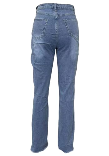 HOT ! Vaceky Women Cuffed Ripped Jeans Y2K Distressed Ripped Skinny Stretchy Denim Pant
