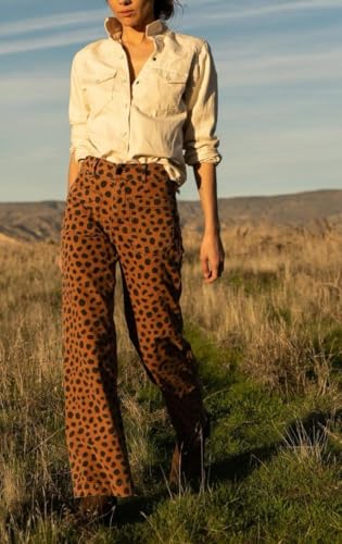 • TRENDY PRINT: Leopard print jeans make a fierce statement. Embrace your inner trendsetter with these leopard printed pants, a bold addition to your wardrobe.