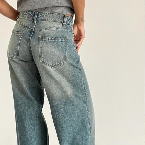 HOT ! Women Low Rise Baggy Jeans Y2k Straight Wide Leg Boyfriend Viange Casual Denim Pants with Pockets