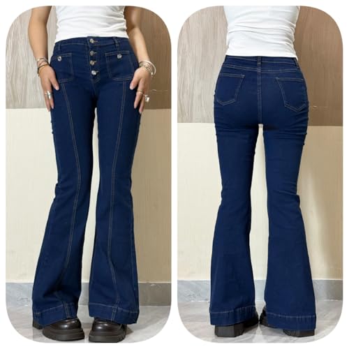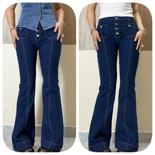 • Features: Low waisted pattern printed flared jeans feature a classic long length, wide leg, and a zipper button closure for a trendy, relaxed fit.Vertical front seams elongate your legs, enhances your curves, giving you a confident fit feeling