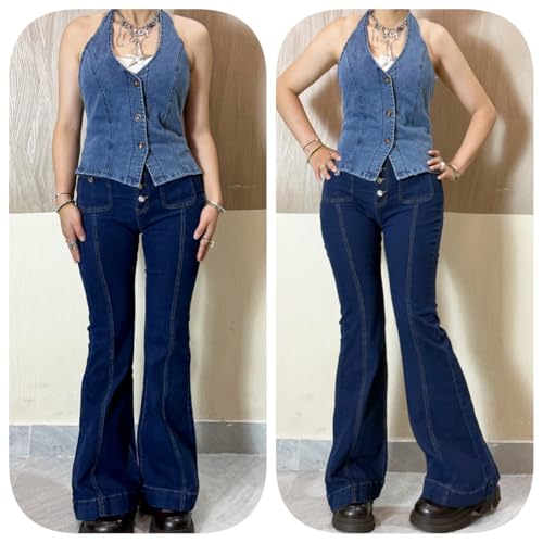 More information about HOXIJIA Women Y2K Low Rise Flare Jeans Wide Leg Stretch Denim Pants 2000s Retro Bell Bottom Streetwear Trousers