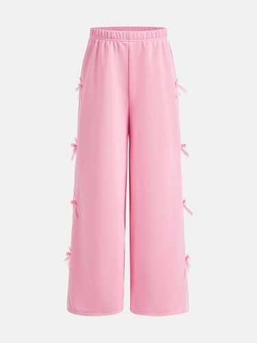 OYOANGLE Girl's Cute Bow Side Elastic Waist Sweatpants Y2K Straight Leg Trousers with Pocket 1
