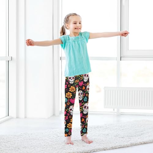 Day of The Dead Girls' Leggings Toddler Doodles Sugar Skulls Kids Yoga Pants Dance Active Tights 4T 5