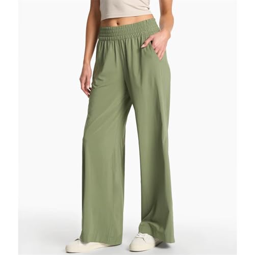 HOT ! Womens Wide Leg Pants Summer Flowy Palazzo Casual High Waist Elastic Pants Beach Vacation Trousers with Pockets