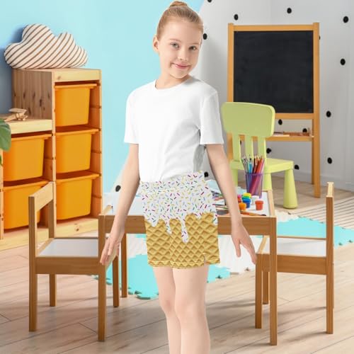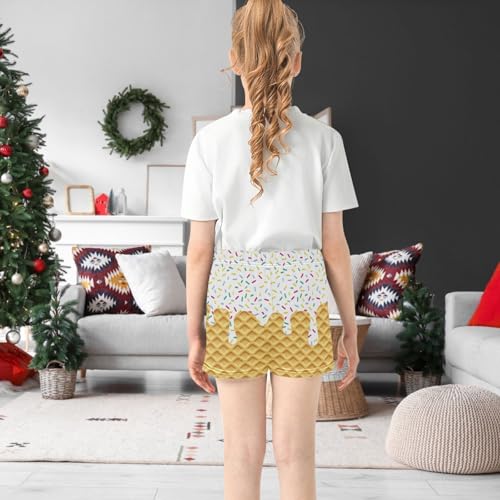 Girls Athletic Shorts Ice Cream Kids Gymnastics Yoga Dance Biker Shorts Elastic Waist with Pocket 7-15Y 2