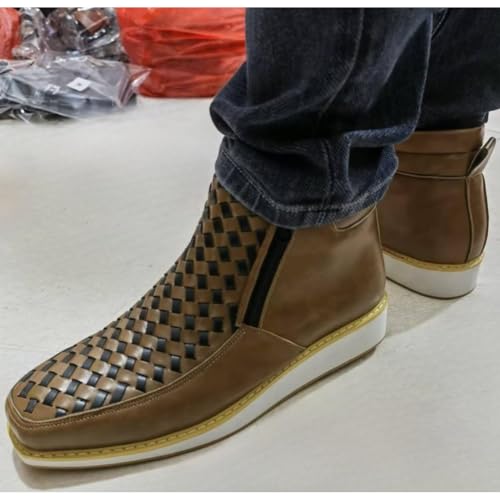 Zenfaze Handcrafted Western Cowboy Boots, Zenfaze Orthopedic Shoes for Men, Men's Square Toe Leather Hand-Woven Cowboy Shoes 7