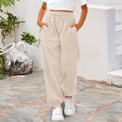 HOT ! Girl's Elastic Waist Straight Leg Sweatpants High Waisted Baggy Joggers Loose Sweat Pants Casual Sports Trousers with Pockets