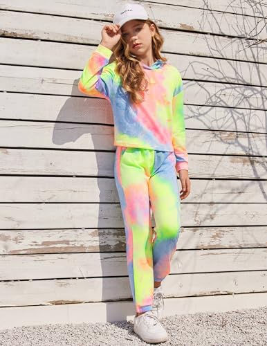 HOT ! Flypigs Girls 2 Piece Outfits Tie Dye Tracksuits Pullover Sweatshirts and Sweatpants with Pockets Casual Sweatsuits Sets