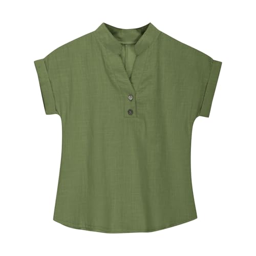 More information about Linen Shirts for Girls Summer Casual Button v Neck Tunic Blouses 2025 Kids Trendy Lightweight Solid Short Sleeve Tops