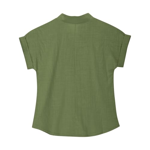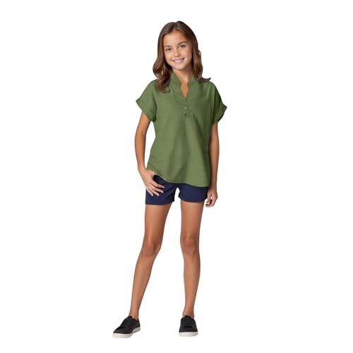 Linen Shirts for Girls Summer Casual Button v Neck Tunic Blouses 2025 Kids Trendy Lightweight Solid Short Sleeve Tops 7
