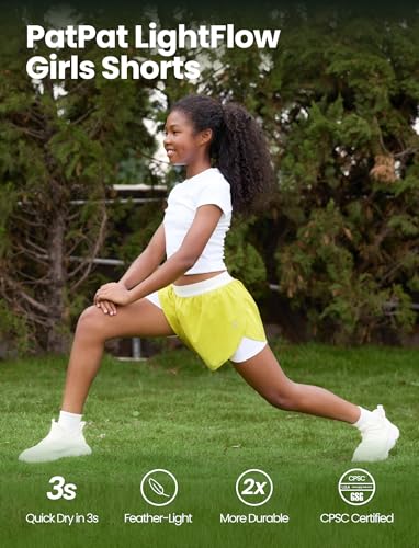 HOT ! PATPAT Girls Sports Set, Kids T-Shirt (One Piece) with Quick-Dry & Instant-Cooling, Girls 2-in-1 Shorts, Size US6/XS