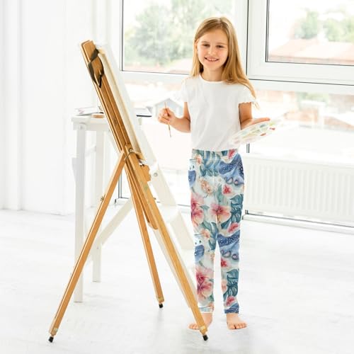 Boccsty Blue Stingray Pink Flowers Girls Leggings Kids Yoga Pants Dance Active Tights 4T 5