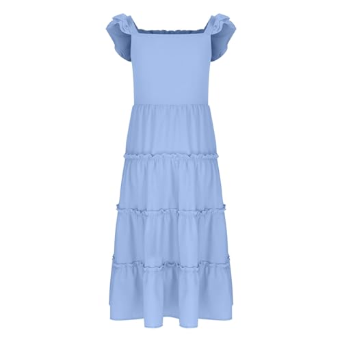 HOT ! Girls Summer Sleeveless Ruffle Dress Loose Tiered Aline Boho Sundress Casual Party Flowy Maxi Dresses for 3-13 Years