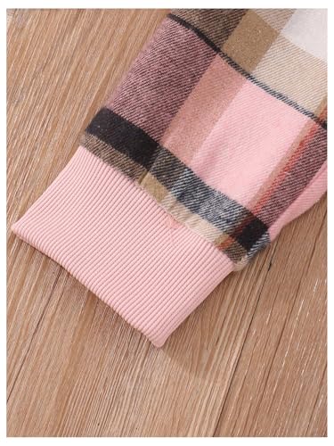 WDIRARA Girl's 2 Piece Outfits Patchwork Plaid Long Sleeve Hoodie and Sweatpants Tracksuit 6