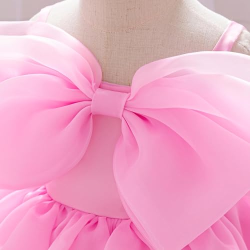 6M-3Y Party Dress for Girls Cute Bow Tie Front Strappy Princess Flower Dresses Formal Elegant Layered Lace Gowns 6