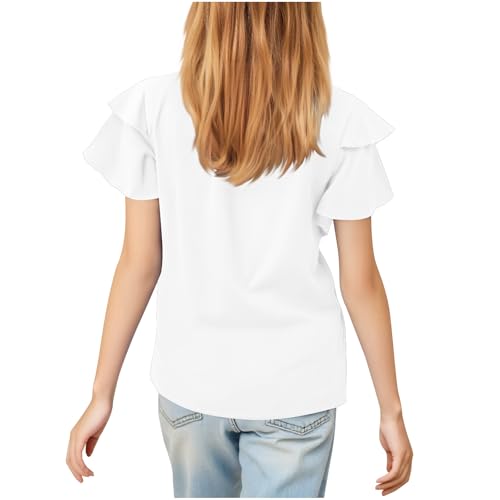 Girls Pleated Short Sleeve T Shirts Summer V Neck Kids 2025 Blouses Solid Color Lightweight Cute Chiffon Tunic Tops 6