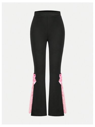 • Features: These flared leg pants feature a high waisted design with playful side bow and mesh details that add a unique touch to any outfit