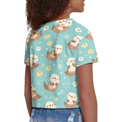 More information about Kids Crop Tops Summer Casual Short Round Neck T-Shirt Trendy Loose Sports Pullover for 5-14Y Girls