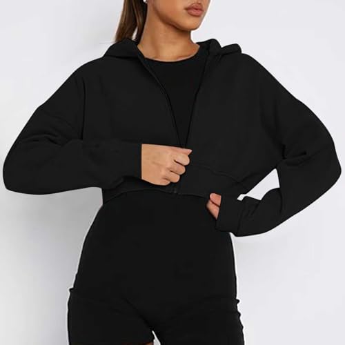 HOT ! Hoodies for Women Zip up Y2k Long Sleeve Drop Shoulder Cropped Sweatshirts Cute Casual Lightweight Teen Girls Jackets
