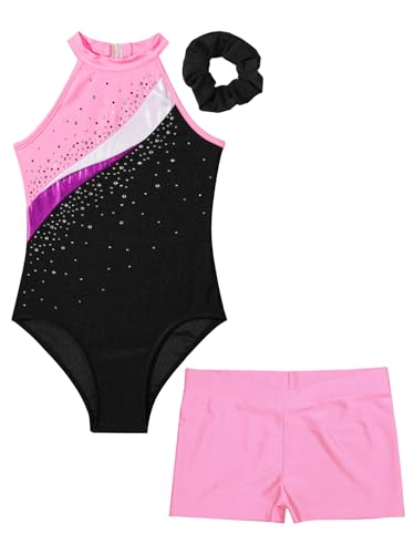 ACSUSS Kids Girls Sleeveless Gymnastic Leotard with Athletic Shorts Hair Scrunchie Biketard Dance Outfits Sets Tracksuit 6