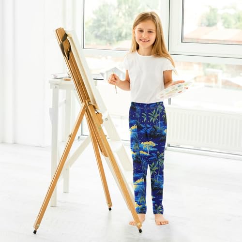 Boccsty Dark Blue Yellow Palm Trees Stars Girls Leggings Kids Yoga Pants Dance Active Tights 4T 5