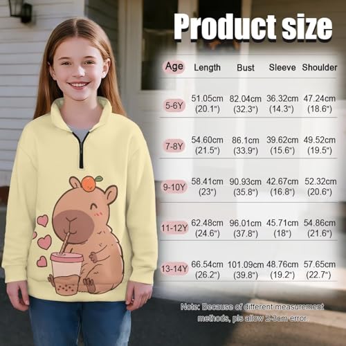 Girls 1/4 Zip Sweatshirts with Long Sleeve Stand collar Casual Print Pullover Top for 5-14 Years 4