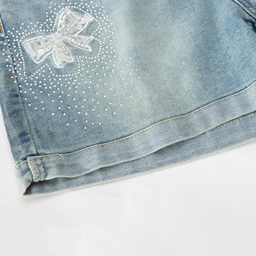 Girls Denim Shorts Bow Graphic Elastic High Waist Baggy Wide Leg Loose Fit Jeans Shorts with Pockets 6