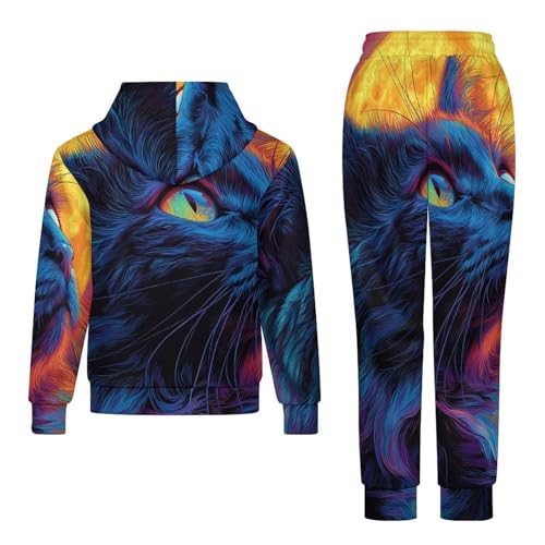 HOT ! Boys Girls Pullover Hoodie and Pants Outfit 2PCS Set Sweatshirt for Kids, Cat Moonlight Hippie Neon