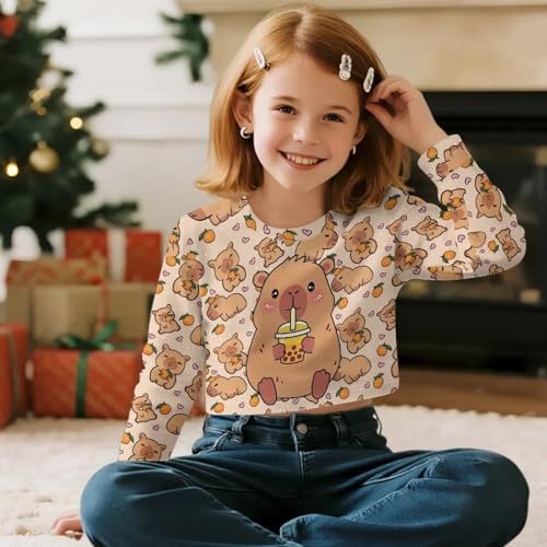 Girls Long Sleeve Crop Tops Cute Crewneck Sweatshirt Spring Fall Top Graphic Cropped Shirts for Girls 5-14 5
