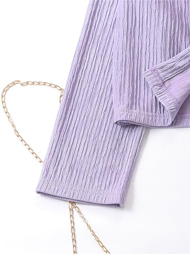 Kids Girls 3 Piece Lone Sleeve Crop Top And Camisole with Pants Set Casual Daily Wear Outdoor Sports Outfits Purple 8-9 Years 5