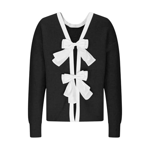 More information about Y2k Bow Sweater Knit Ribbed Pullover Round Neck Backless Patchwork Trendy Cropped Sweaters 2025 Elegant Fall Clothes