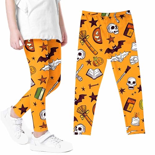 Halloween Leggings for Girls Pumpkin Ghost Bat Print Festive Toddler Tights Pants Slim Long Trousers 7