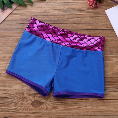 YEAHDOR Big Girls' 2 Pieces Gymnastics Dancing Outfits Crop Bra Top with Shorts Set Athletic Sports Actviewear Blue Mermaid Scales 10-12 Years 6