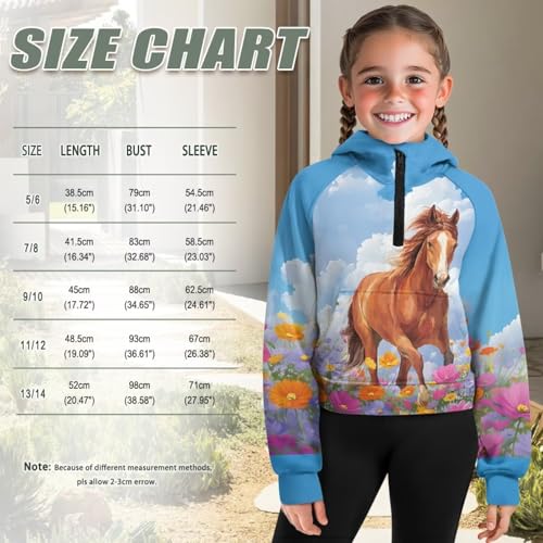 More information about Girls Hoodies Graphic Sweatshirts for Kids Half Zipper Hooded Pullover Preppy Shirts with Pockets 5-14