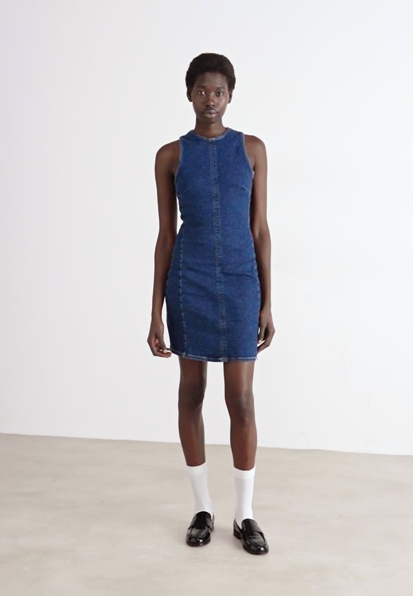 HOT ! MINI COLUMN DRESS - Denim dress - denim dark